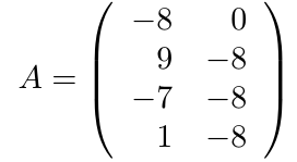 Considerando la matriz A, de tamaño, 4 \times 2. Calcule la matriz transpuesta de A, es decir, A^{T}.