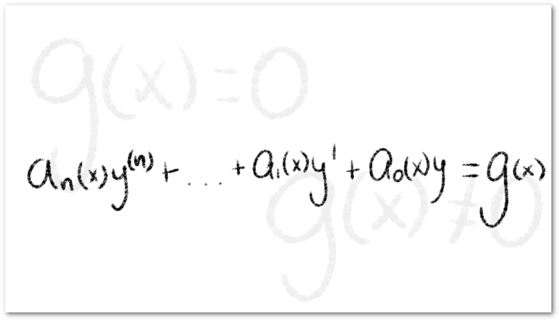 La situación no será diferente cuando estudiemos ecuaciones diferenciales ordinarias lineales de orden superior, pues al estar estas expresadas de la siguiente forma: