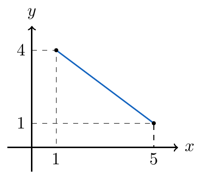 Calculamos la distancia entre estos dos puntos aplicando la fórmula para la distancia
