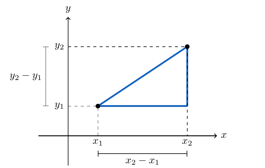 Pero, ¿cómo calculamos la distancia entre estos dos puntos? Lo primero que debemos notar es que estos definen un triángulo rectángulo y además, la medida de los catetos está definida por la diferencia entre y