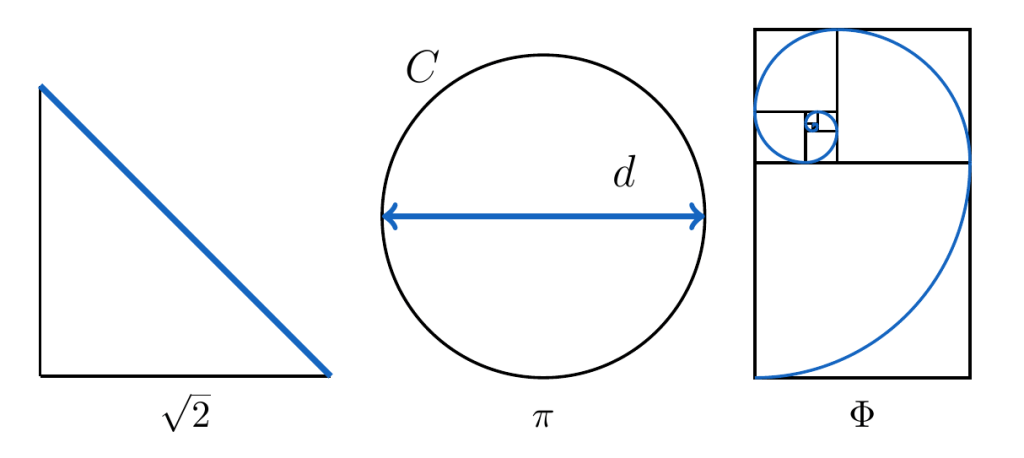 Las grandes constantes matemáticas provienen en su mayoría de relaciones geométricas por ejemplo, la constante de Pitágoras es la longitud de la hipotenusa de un triángulo rectángulo con ambos catetos igual a